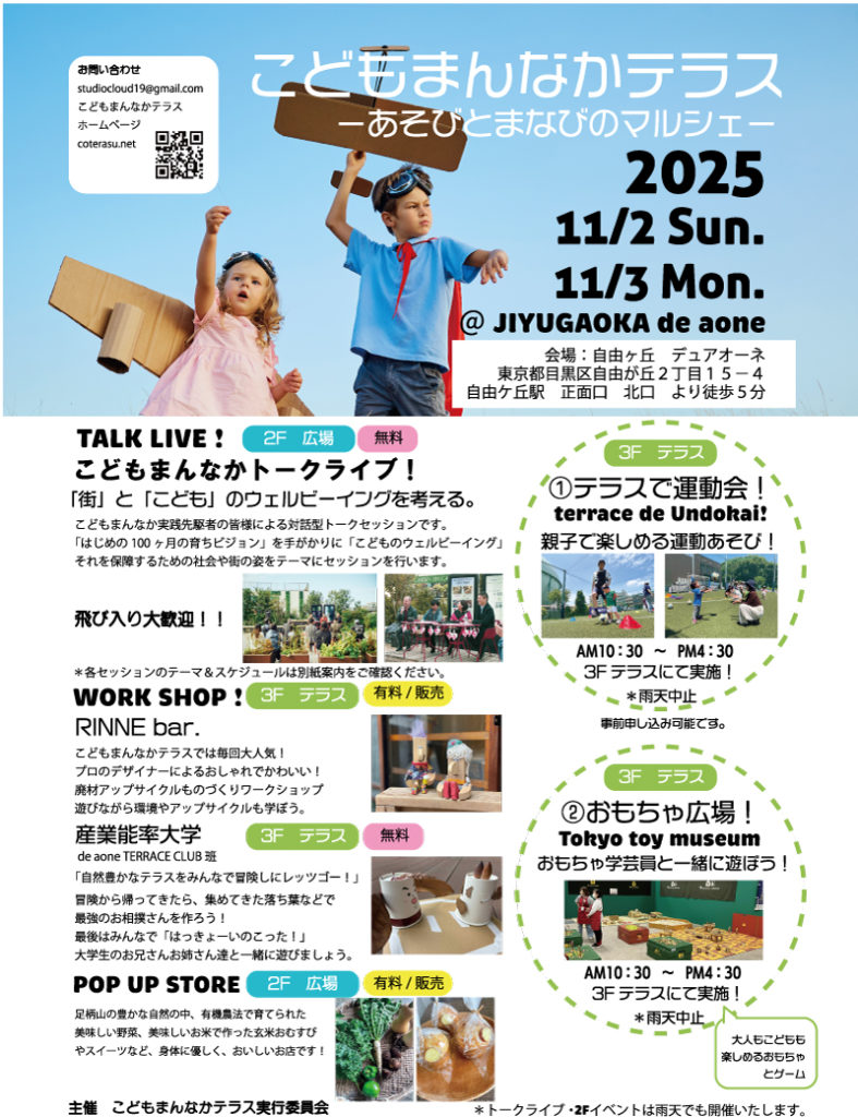2025年11月3日 (月・祝) に東京で開催される「こどもまんなかテラス 2025 -あそびとまなびのマルシェ-」にて行われるトークイベントに登壇します。